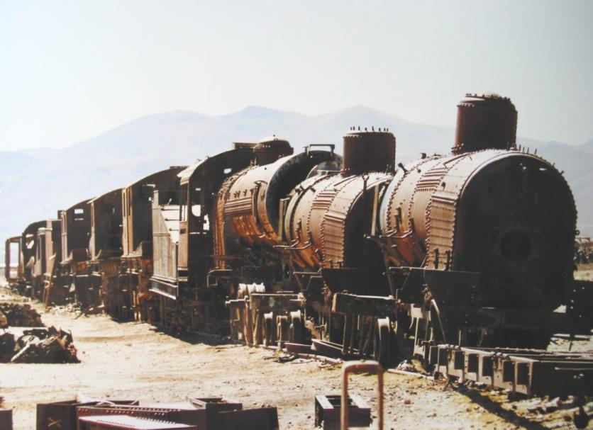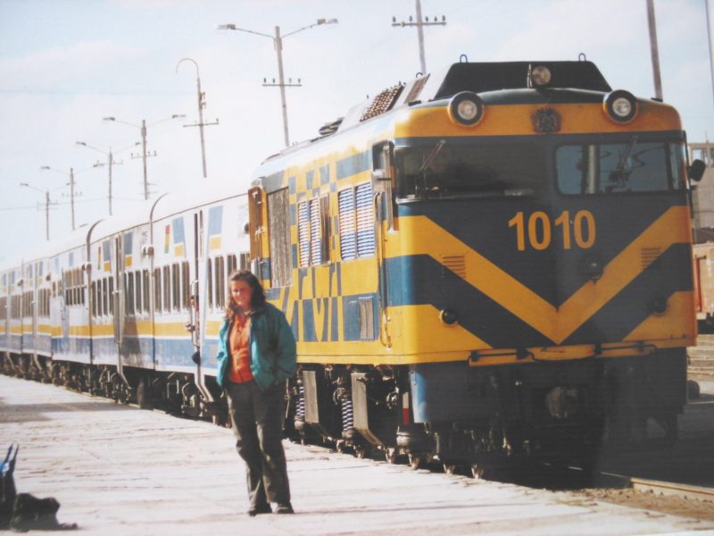Na een soepel busrit, met film, zijn we in Oruro aangekomen. Over een uur vertrekt de Expresso del Sur naar Uyuni. We zitten al bij het station, naar het gedoe om ons heen te kijken. Oruro ziet er niet zo spannend uit, al is het best groot, 150.000 inwoners ofzo. Het ziet er niet arm uit, maar de vierkante huizen in een grauwe grondkleur zijn slordig tegen de heuvels gemept. Oruro lijkt rijker dan de andere plaatsen die we gezien hebben. Relatief veel dure auto’s en relatief weinig campesino’s, de arme boeren. De dorpjes onderweg waren kleurrijker, overal stalletjes en marktjes en gedoe. Ook het landschap tussen La Paz en Oruro was niet geweldig spannend. Enorme grasvlaktes met af en toe een enorme vulkaan aan de horizon. Het was zo verschrikkelijk helder dat we de grote vulkaan van het Leica Nationaal Park aan de grens met Chili konden zien. Goh, Oruro, maanden geleden trok ik met mijn vinger een route over de kaart en besloot om via Oruro te gaan om met de Expresso del Sur te kunnen reizen. De Expresso del Sur staat nu op een paar meter afstand te glinsteren in het keiharde zonlicht, wauw.