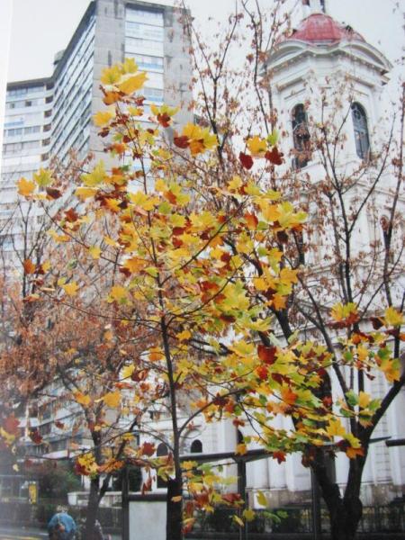 De feestdagen zijn voorbij en het is druk op straat. Strakke gezichten in de metro van de mensen op weg naar hun werk. De tourist office was nu wel open en we konden eindelijk informatie krijgen over tours en hoe we bij het nationale park buiten de stad konden komen. Voor de tours is het inmiddels te laat en de bussen naar het nationale park vertrekken in deze tijd van het jaar (herfst) alleen in het weekend, en in het weekend is het tourist office gesloten zodat je dat pas na het weekend ontdekt, aaaarch. Op een of andere manier werkt Santiago steeds tegen, mijn geluk werkt hier blijkbaar niet. Nog maar een dagje rondslenteren door de parkjes dus. Het is nog steeds donker weer, maar het is droog. En af en toe zijn er verrassend leuke doorkijkjes met mooie lanen. Verkleurde bomen en kleurrijke huizen. Ondanks dat Santiago niet erg z’n best doet kan het eigenlijk ons humeur toch niet verpesten. We hebben niets meer te verliezen de reis is helemaal geslaagd en de ervaring is binnen. Ik vind alles wel best nu.