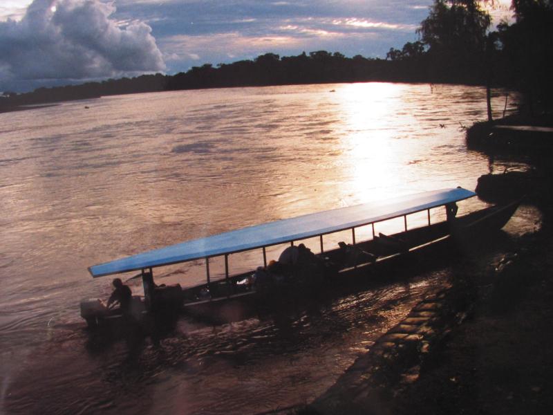 Zo ongeveer om de 15 minuten ren ik met de schep en het wc-papier naar de bosjes om een merkwaardige smurrie in camouflagekleuren te deponeren. Ik heb inmiddels twee zakjes ORS en een hand norit naar binnen gewerkt, maar dat werkt nog niet. Chacotay heeft wat sterke pillen tegen diarree bij zich en op aanraden van Jeroen, een dokter, heb ik die genomen. We zijn hier in Boca Manu even gestopt om extra pillen te kopen. Vervelend om ziek te zijn, vooral in de rimboe. Ik blij met de morele steun van Jeroen, Chacotay en Petra. De koele bries van de varende boot helpt trouwens goed tegen de misselijkheid en het lijkt erop alsof die pil begint te werken. Gelukkig maar, elke 15 minuten de boot afmeren is ook een beetje omslachtig. We zagen net in Boca Manu onze Duitse lifter weer even. Hij is gestrand in Boca Manu en weet niet hoe hij weer terug moet komen. Hij hield zich groot, maar ik zag een beetje paniek in zijn ogen, arme man. Vandaag bereiken we de "reserved zone" van het park. Nog ongeveer acht uur varen.